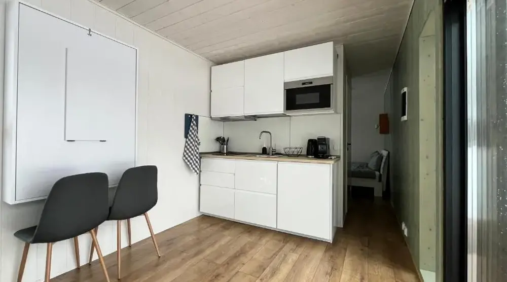 Liitle bit more privacy, like window curtains in the main room; There will be other houses with neighbors soon. It would be grate to have roof on external terrasse.